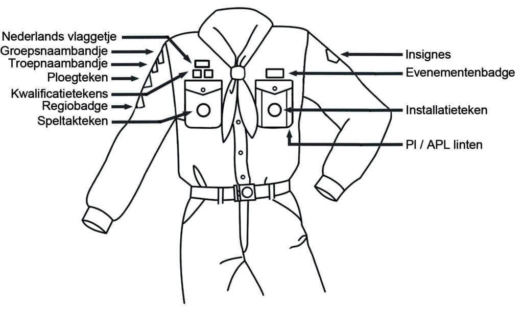 Waar moet welk insigne op mijn nieuwe ScoutFit genaaid worden?